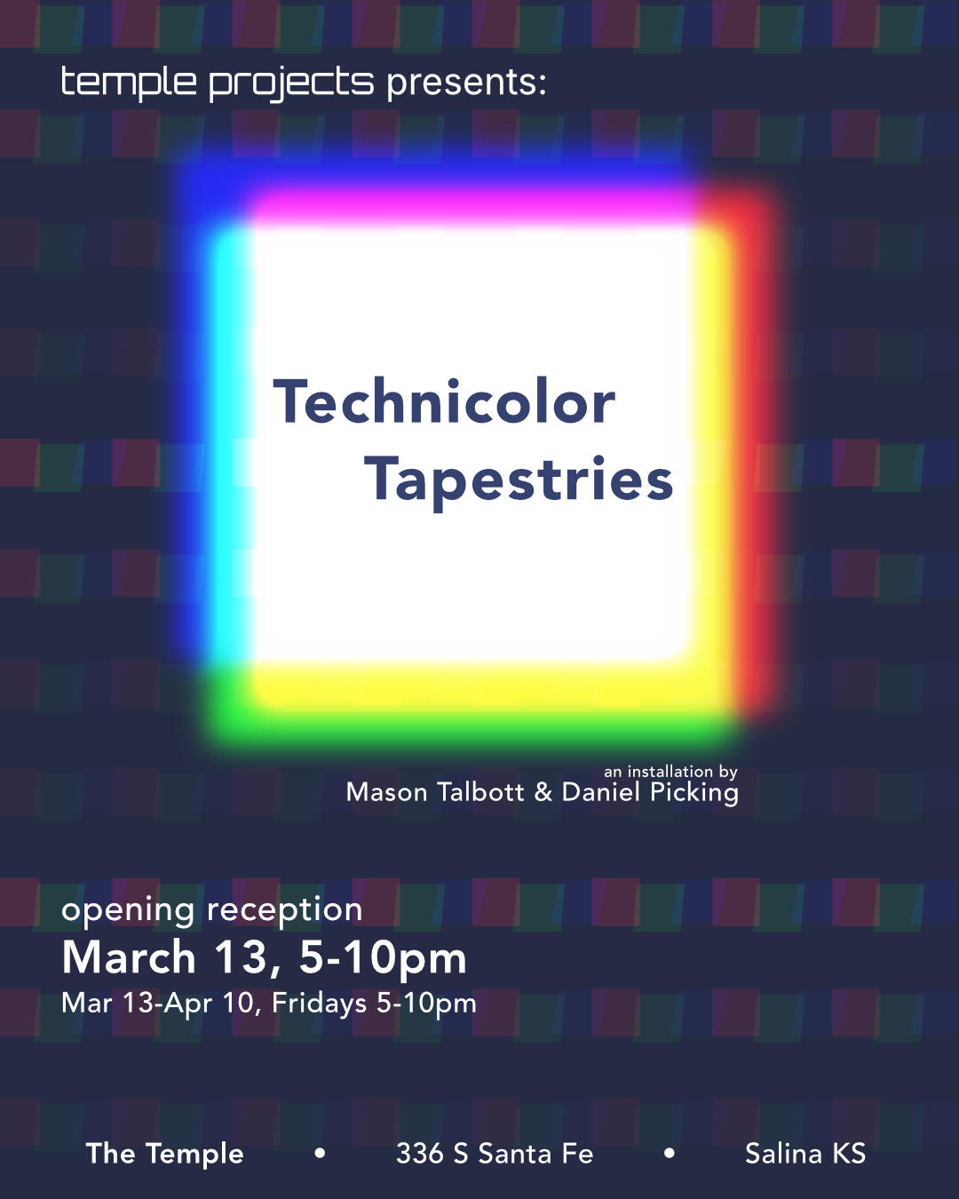 A new installation by Mason Talbott and Daniel Picking presented in the Theater Auditorium of the Salina Masonic Temple.A vibrant multimedia installation featuring Mason’s LED RGB floodlights and work from Daniel’s ongoing series Mnemonic Resonances envelops the auditorium in shifting patterns of light and shadow to create an immersive environment that reframes the historic interior.